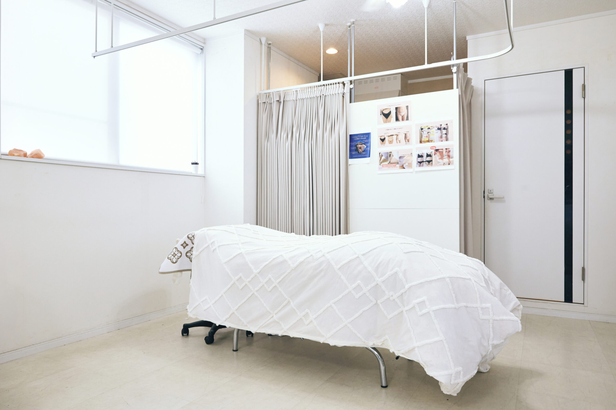 当日受付OK/2名以上の利用OK/2回目以降特典あり/朝10時前でも受付OK/女性スタッフ在籍/完全予約制/指名予約OK/一人で貸切OK/リクライニングチェア(ベッド)/メイクルームあり/アメニティまたはコスメが充実/つけ放題メニューあり/都度払いメニューあり/体験メニューあり/ブライダルメニューあり